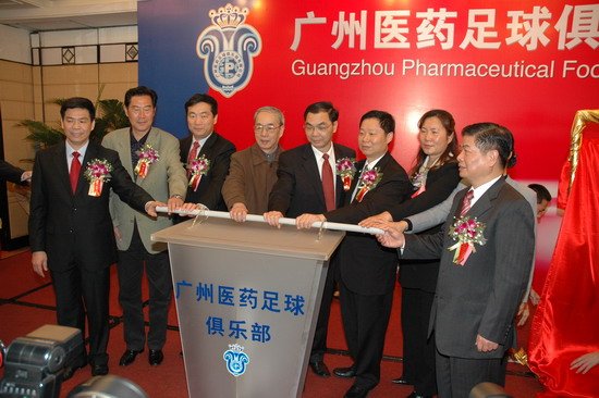 廣州足球俱樂(lè)部有限公司由廣藥集團(tuán)旗下“潘高壽”、“王老吉”、“陳李濟(jì)”等14家公司共同投資組建,公司決策機(jī)構(gòu)為股東大會(huì)。同時(shí),在成立儀式新聞發(fā)布會(huì)宣布了俱樂(lè)部的組成架構(gòu)——楊榮明任公司董事長(zhǎng)、廣藥集團(tuán)副總經(jīng)理陳志農(nóng)和廣州市足協(xié)秘書長(zhǎng)孔茂勝任副董事長(zhǎng)、原中一藥業(yè)董事長(zhǎng)兼總經(jīng)理麥奇杰任總經(jīng)理一職。