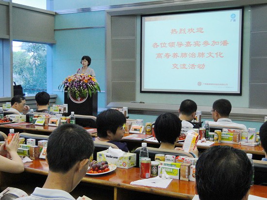 盧其福高級經理再以ppt生動介紹潘高壽公司的發展歷程、實力,重點介紹潘高壽養肺治肺的文化。